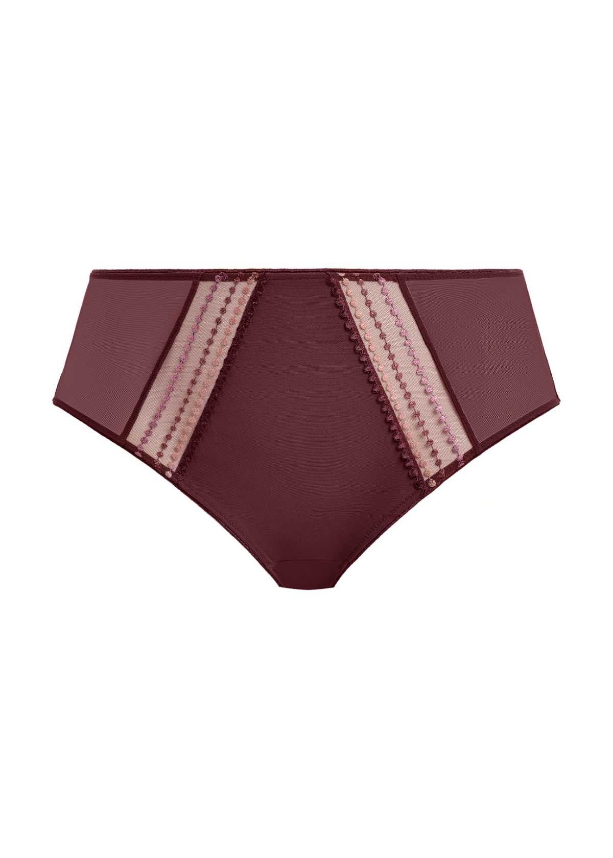 Matilda Sugarplum Full Brief er den perfekte makker til den populære Matilda BH. Med sit sofistikerede design i dybe bordeaux- og rosa nuancer, kombineret med smukke broderede detaljer og let transparente indsatser, får du en feminin og luksuriøs trusse, der både føles behagelig og ser fantastisk ud.