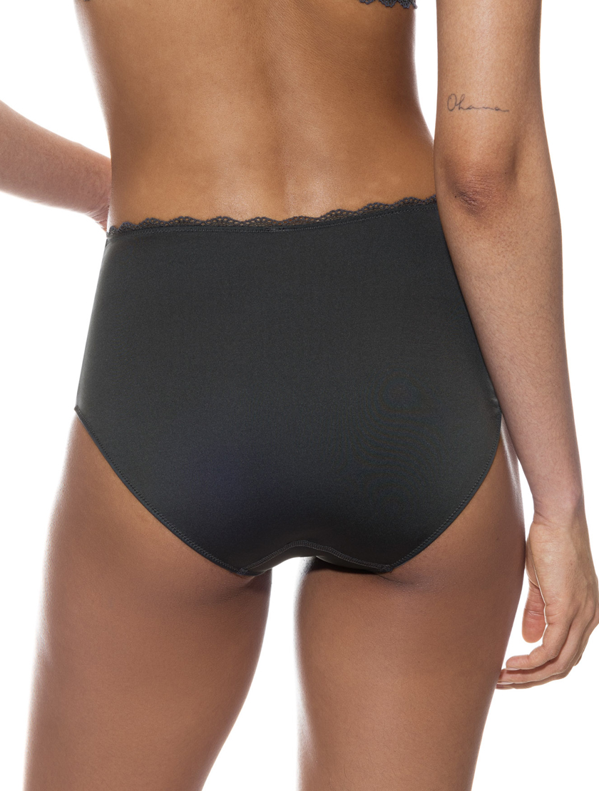 Mey Amorous højtaljet trusse er en smuk og komfortabel højtaljet trusse her i farven Thunder Grey. Den kombinerer et feminint blondelook med en glat, behagelig pasform, der sidder perfekt under tøjet. Det højtaljede snit giver let shaping og en glat silhuet, samtidig med at de bløde materialer sikrer maksimal komfort hele dagen.