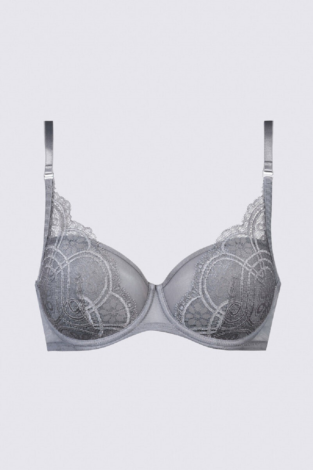 Mey Half Cup Spacer BH i den delikate Lovely Grey nuance kombinerer komfort og stil i ét. Med formstøbte spacer-skåle og glatte kanter giver denne BH dig en flot rund form uden at tilføje ekstra volumen. Den neutrale grå tone gør den ideel til at bære under lyse som mørke outfits – perfekt som en “usynlig base-BH” med stil.